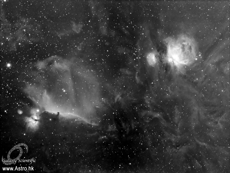 另一端是用APM-LOMO 80/600配合ST8300M拍攝馬頭星雲,以老舊的HEQ5 Pro承載,並以LVI導星。可以看到兩者配合得天衣無縫,就算僅以極軸鏡對軸、LVI以心宿四軸外導星,30分鐘曝光下星點仍然良好。