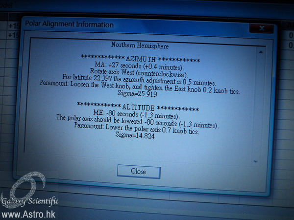我也沒有使用PAE,一來沒準備要把Sky Watcher赤道儀作長期定點使用並作高精度指向,二來日後會以The Sky去運作,那個T Point技術是用在夏威夷州天文台上的,整台數米口徑望遠鏡,指向精度可以做到1角秒以下。